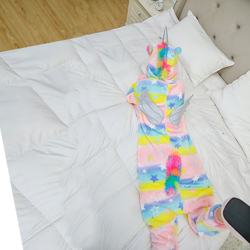 Stay cozy and cute all season long with this Autumn and Winter Flannel Cartoon Nightwear. Made from ultra-soft polyester flannel, this one-piece pajama is designed for warmth, comfort, and fun.